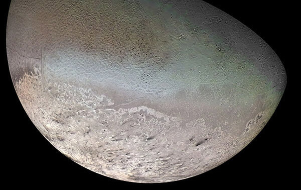 2- إن سطح قمر ترايتون جليدي وهو يحتوي على مجموعة من التضاريس غريبة ووعرة وتسمى تضاريس الشفق ويمكن أن تجد مناظر طبيعية غاية بالروعة .